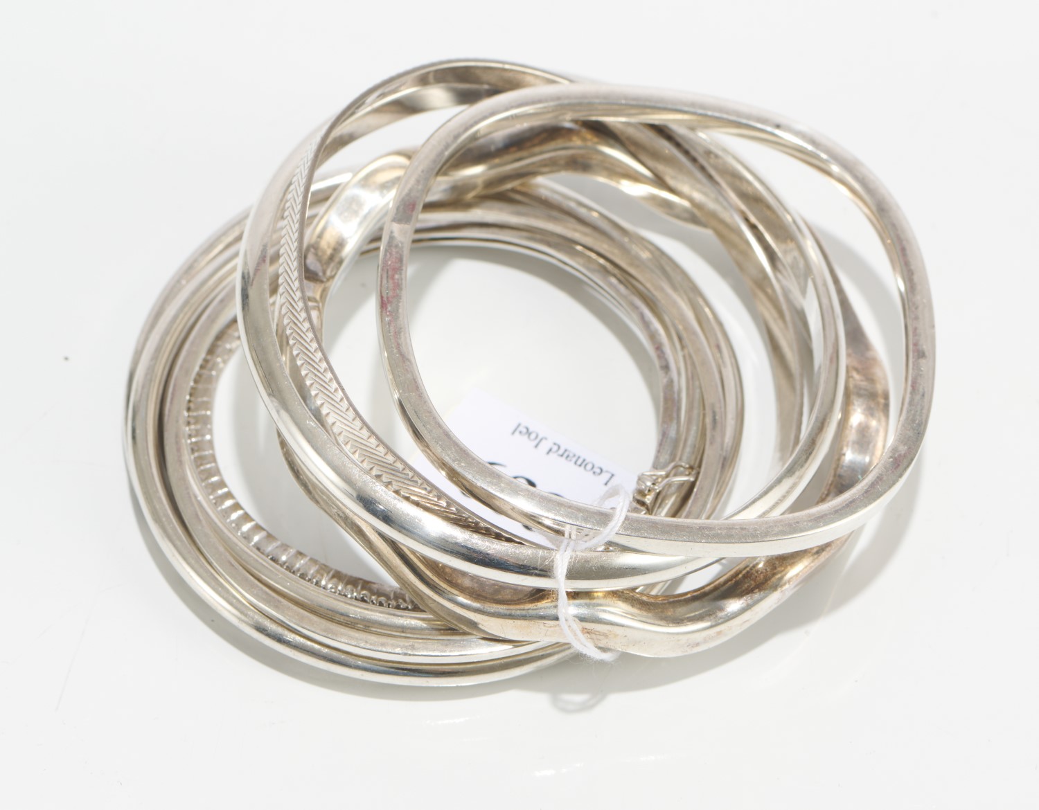 A COLLECTION OF BANGLES IN STERLING SILVER