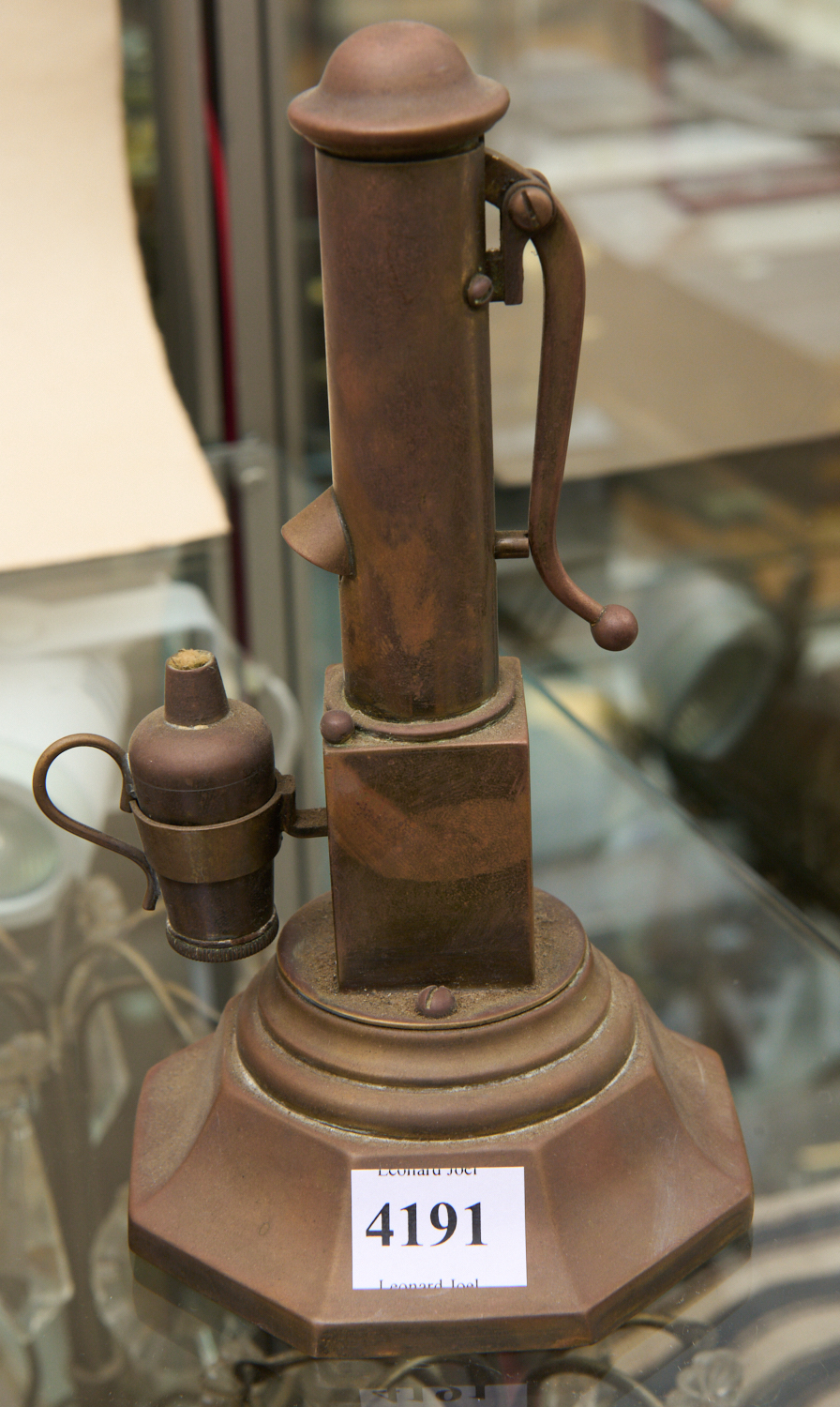 A BRASS CIGAR LIGHTER IN THE FORM OF A WATER PUMP H.18.5CM, LEONARD JOEL LOCAL DELIVERY SIZE: SMALL