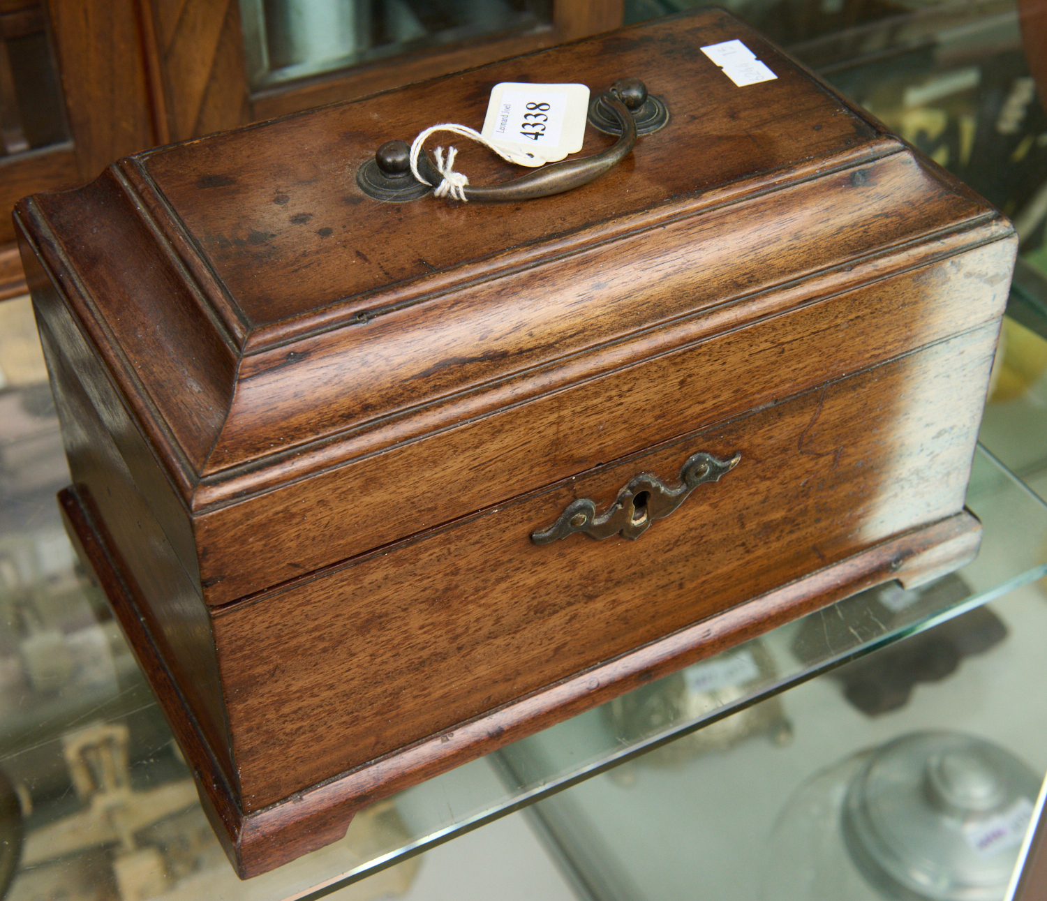A GEORGIAN MAHOGANY TEA CADDY WITH ORIGINAL BRASS WORK W.23CM, LEONARD JOEL LOCAL DELIVERY SIZE: SMALL