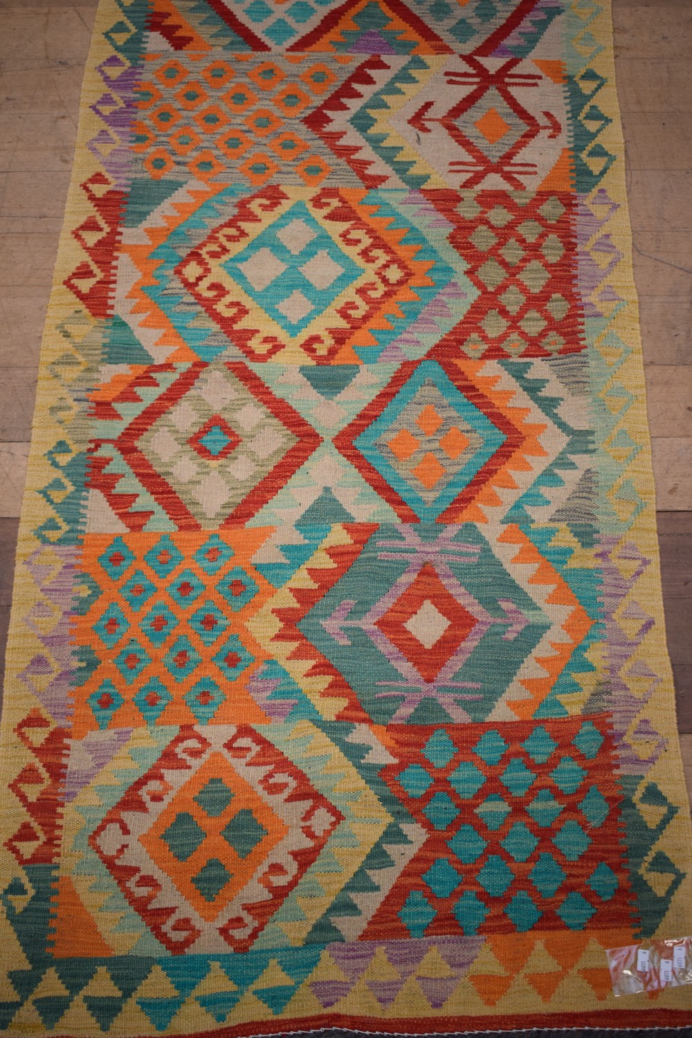 A KAZAK RUNNER IN CAUCASIAN AND DIAMOND CUT DESIGN, 100% WOOL AND VEGETABLE DYES, REVERSIBLE (391 X 78 CM) (LEONARD JOEL DELIVERY SIZE: MEDIUM)