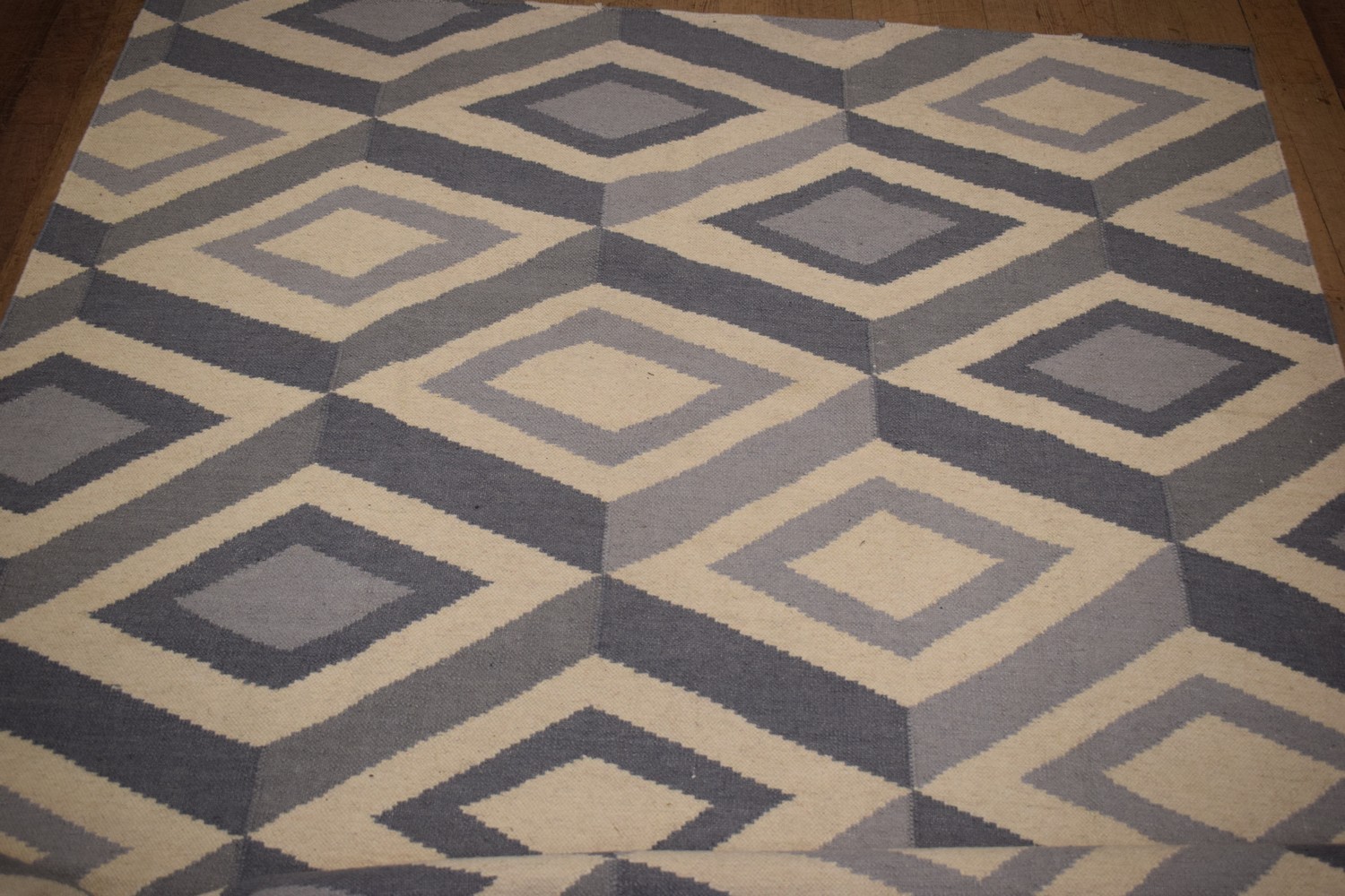 A DESIGNER DHURRIE RUG, 100% WOOL PILE, REVERSIBLE, DIAMOND CUT MOTIF, INDIA (245 X 174 CM) (LEONARD JOEL DELIVERY SIZE: LARGE)