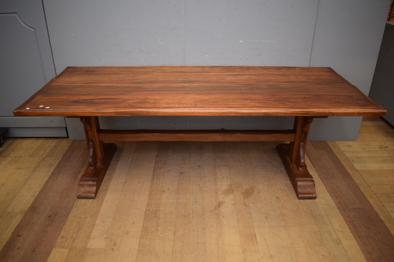 A NICHOLAS DATTNER STRETCHER BASE DINING TABLE ( 77H X 237W X 97D CM) (PLEASE NOTE THIS HEAVY ITEM MUST BE REMOVED BY CARRIERS AT THE CUSTOMER'S EXPENSE. LEONARD JOEL STAFF CANNOT ASSIST CARRYING THIS ITEM) (X-LARGE ITEM)
