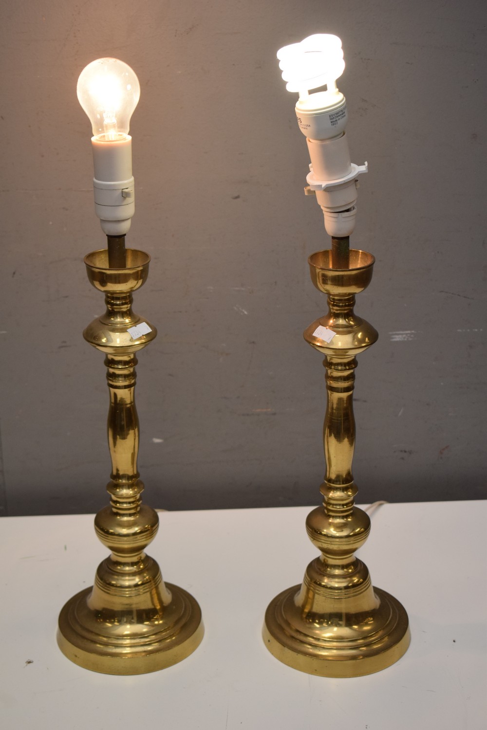 A PAIR OF TURNED BRASS LAMP BASES (A/F) (H53 CM) (LEONARD JOEL DELIVERY SIZE: SMALL)
