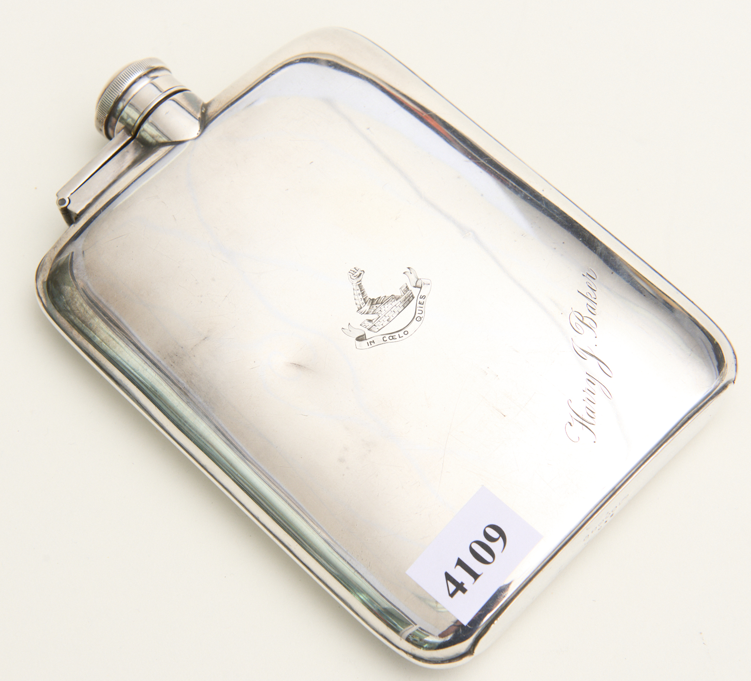 A SILVER PLATED DRINK FLASK H.15CM, LEONARD JOEL LOCAL DELIVERY SIZE: SMALL