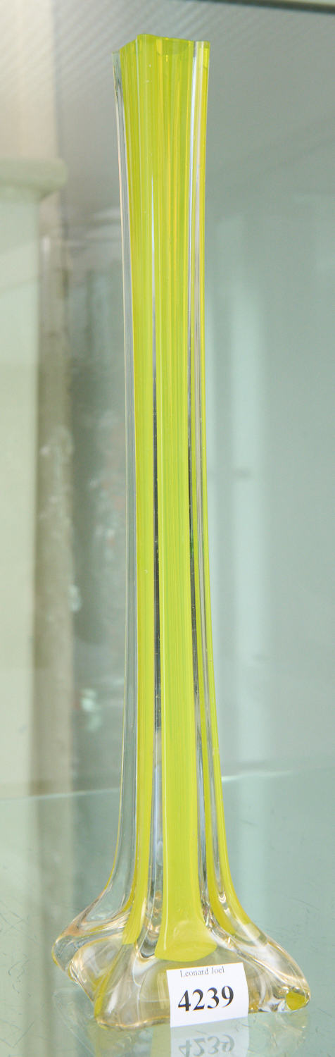 A VINTAGE CASED ART GLASS VASE, YELLOW (30 CM H), LEONARD JOEL LOCAL DELIVERY SIZE: SMALL