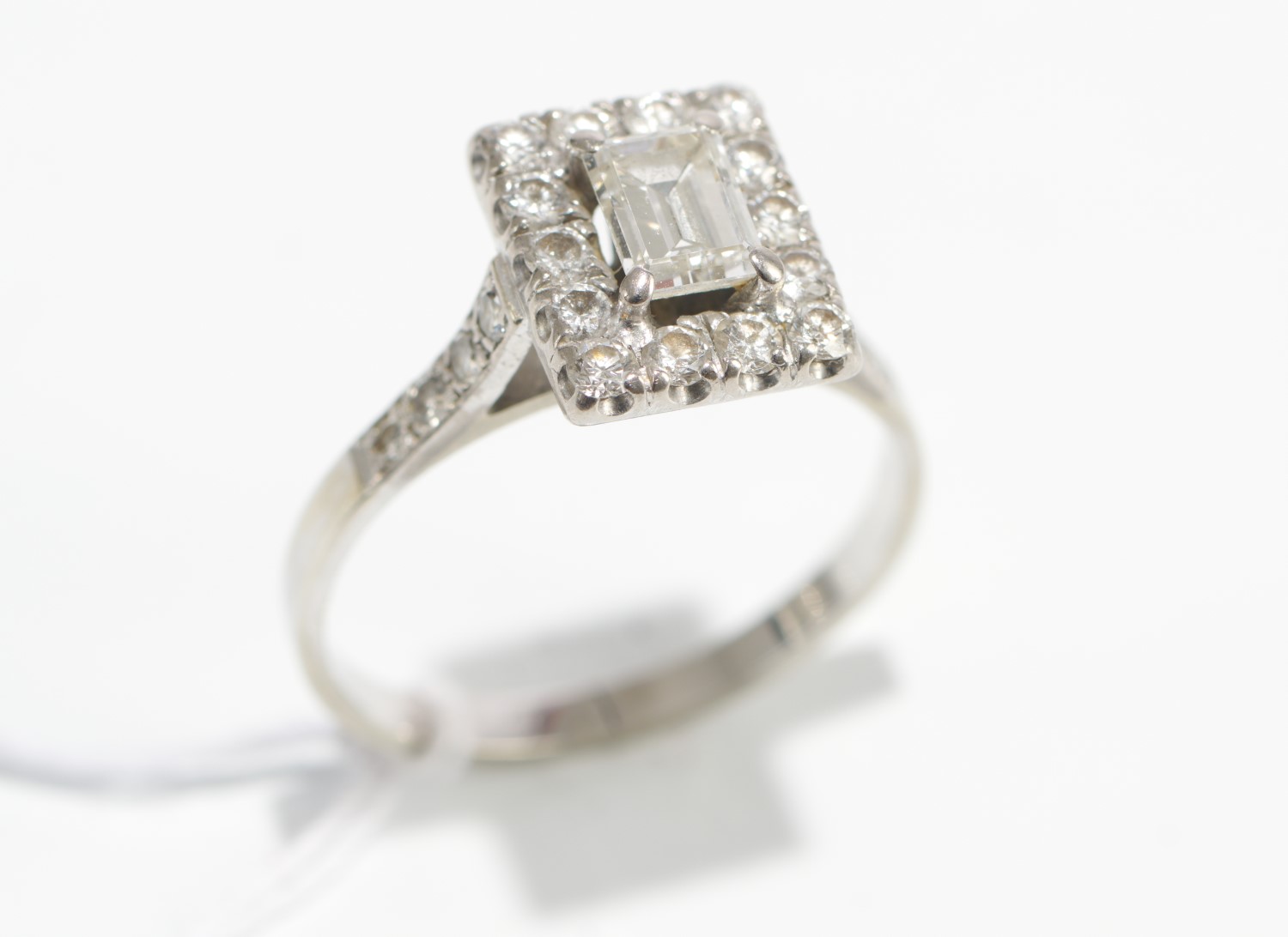 A DIAMOND CLUSTER RING IN 18CT WHITE GOLD, RING SIZE T, 4.9GMS