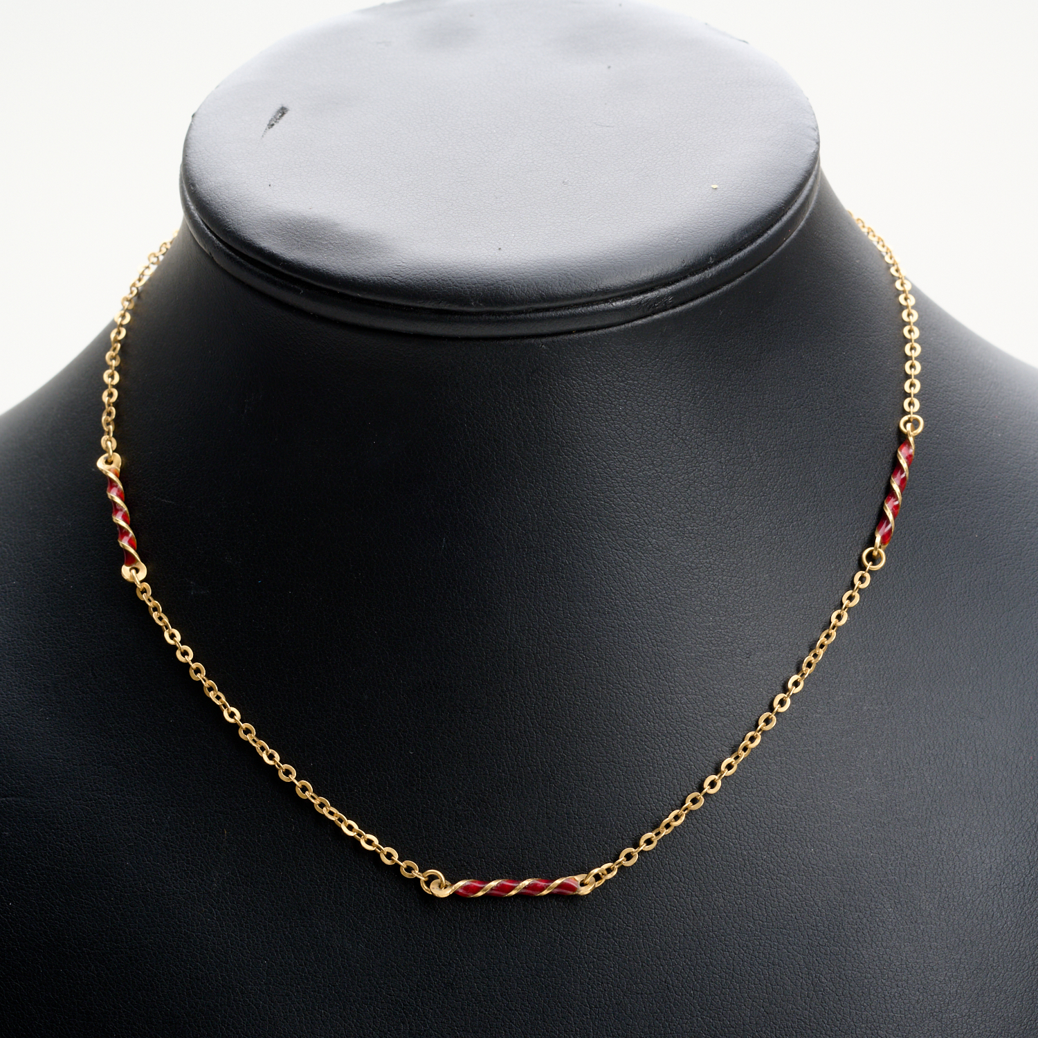 A ENAMEL NECKLACE IN 18CT GOLD, LENGTH APPROXIMATELY 400MM