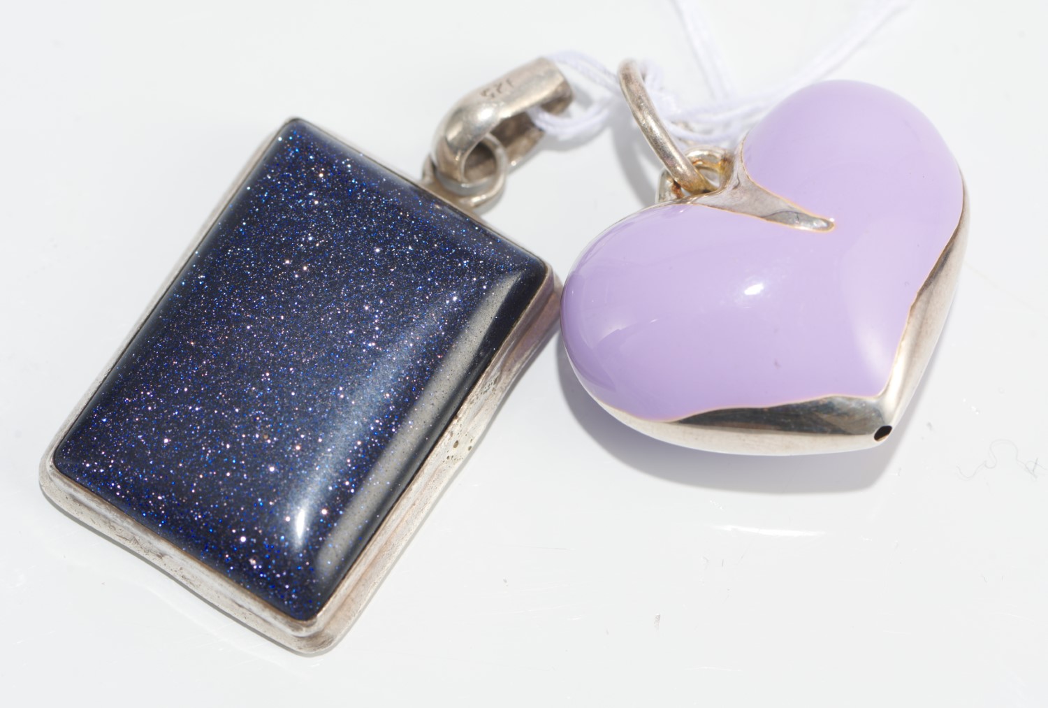 A BLUE SUNSTONE PENDANT, TOGETHER WITH AN ENAMEL HEART PENDANT, BOTH IN STERLING SILVER