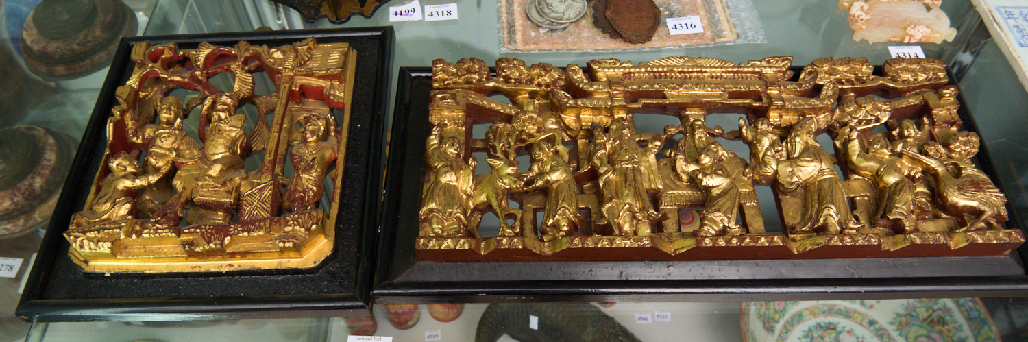 TWO CHINESE WOODEN CARVINGS (40 CM W), LEONARD JOEL LOCAL DELIVERY SIZE: SMALL