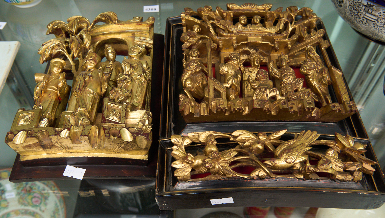TWO CHINESE GILT WOOD CARVINGS (29 CM H), LEONARD JOEL LOCAL DELIVERY SIZE: SMALL