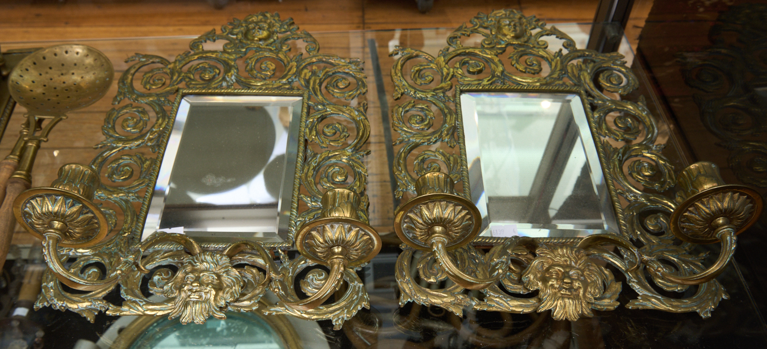 A PAIR OF BRASS MOUNTED MIRRORS (40 CM H), LEONARD JOEL LOCAL DELIVERY SIZE: SMALL