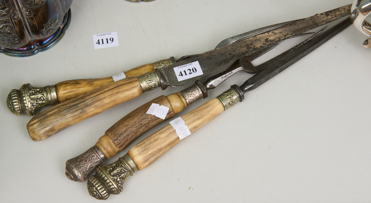 A GROUP OF HORN HANDLED KNIVES AND FORKS, ONE SILVER HANDLED, LEONARD JOEL LOCAL DELIVERY SIZE: SMALL