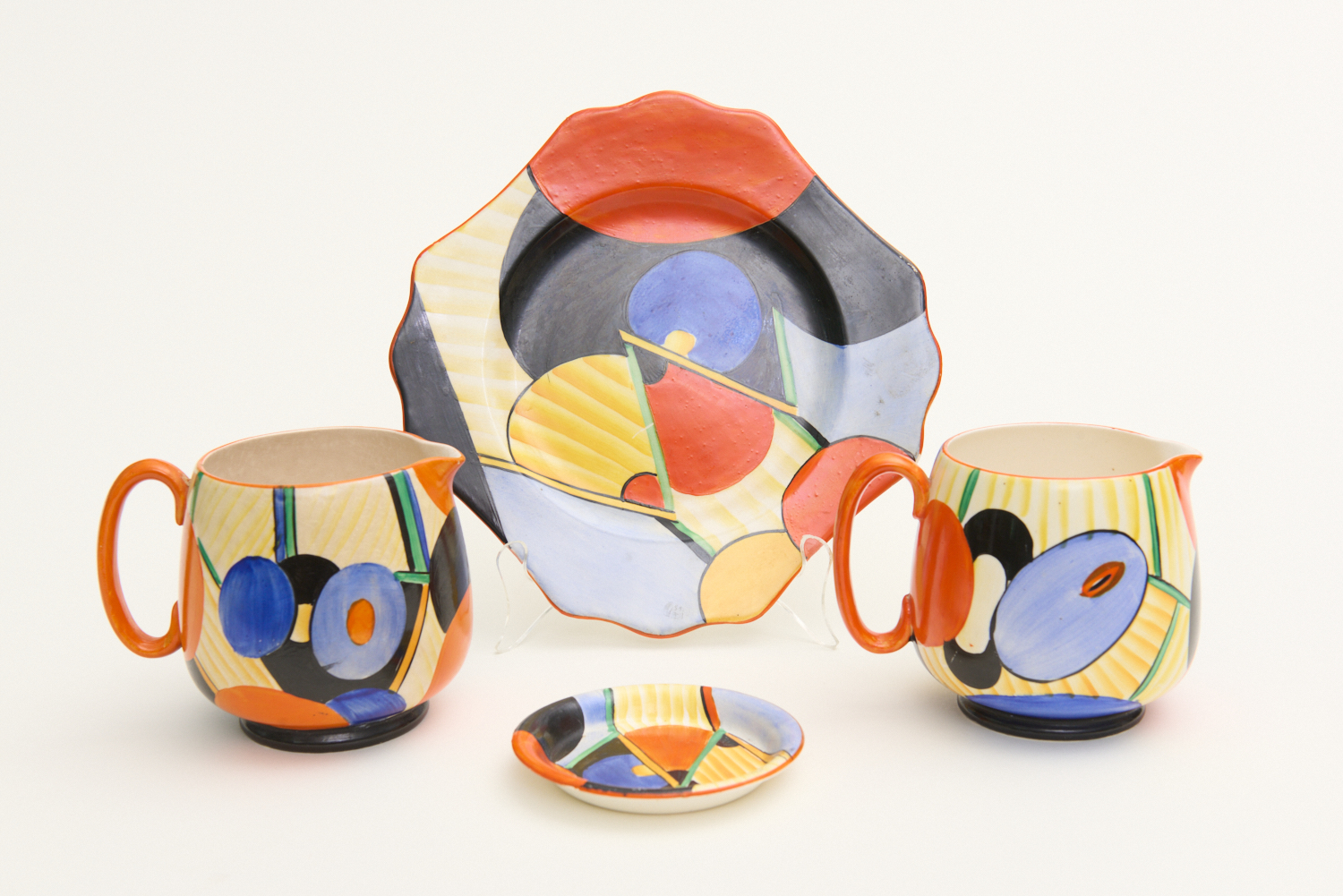 A GROUP OF VIBRANT CROWN DEVON HAND PAINTED ART DECO CERAMICS, LEONARD JOEL LOCAL DELIVERY SIZE: SMALL