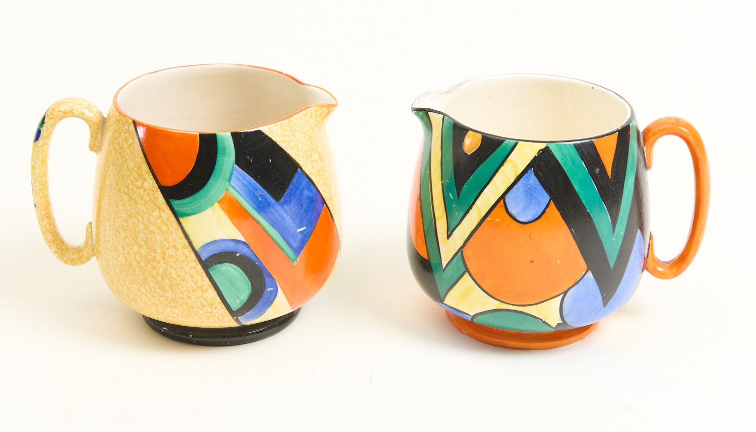 TWO CROWN DEVON JUGS WITH GEOMETRIC MOTIF, LEONARD JOEL LOCAL DELIVERY SIZE: SMALL