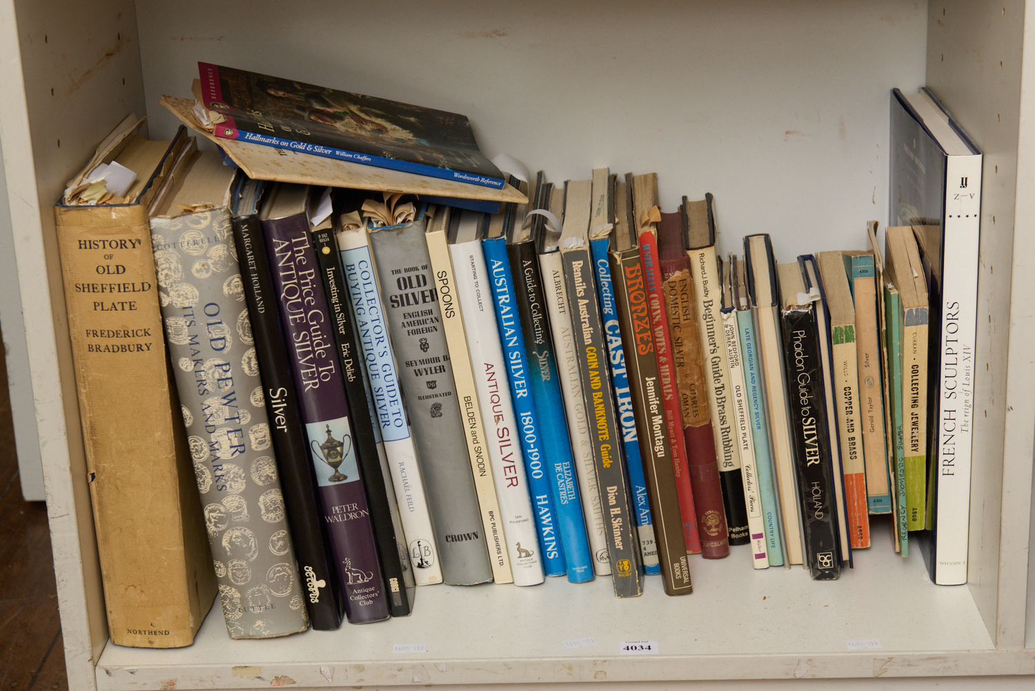 SHELF OF REFERENCE BOOKS PERTAINING TO SILVER, METALS AND COINS, LEONARD JOEL LOCAL DELIVERY SIZE: SMALL. The Rodney Permezel Collection