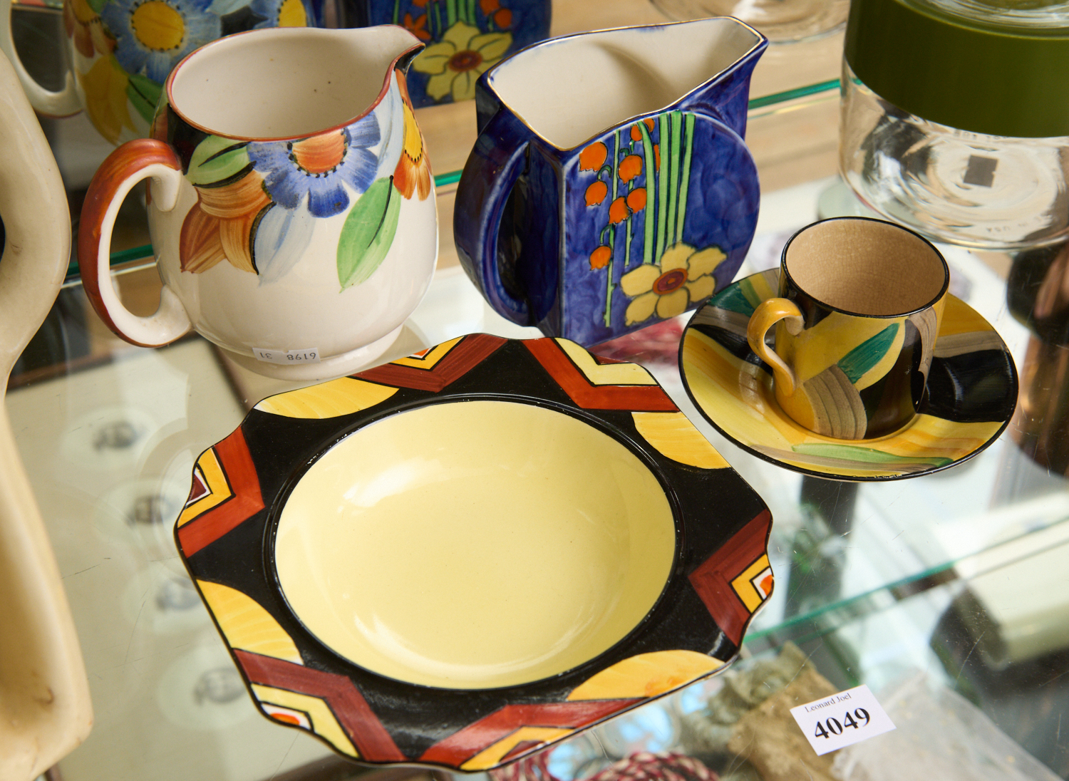 A GROUP OF ART DECO HAND PAINTED CERAMICS INCLUDING SUSIE COOPER DESIGNED, LEONARD JOEL LOCAL DELIVERY SIZE: SMALL