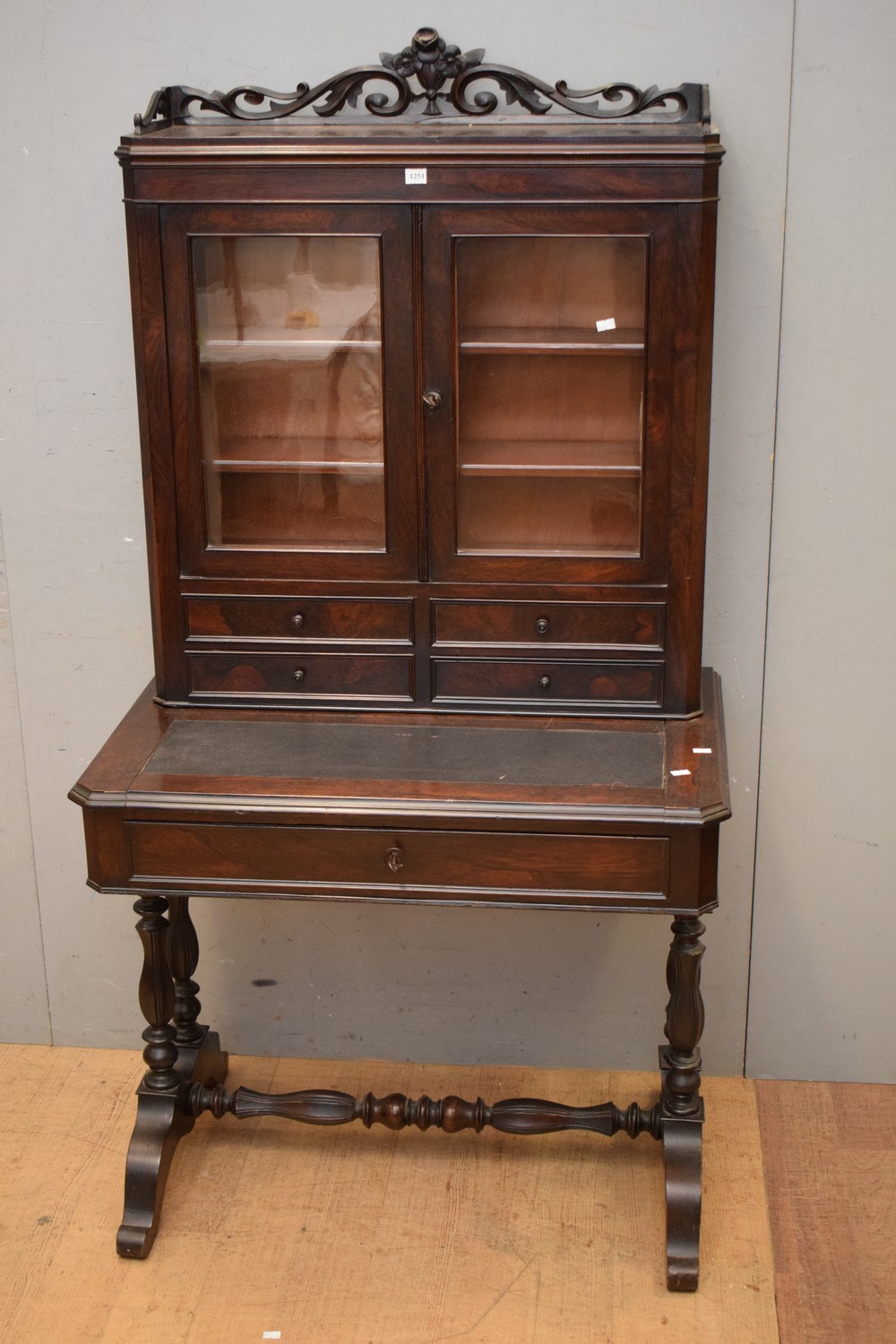 A VICTORIAN ROSEWOOD DOUBLE BODIED WRITERS DESK WITH LEATHER INSET TOP (A/F) (H105 X W81 X D52 CM) (PLEASE NOTE THIS HEAVY ITEM MUST BE REMOVED BY CARRIERS AT THE CUSTOMER'S EXPENSE. LEONARD JOEL STAFF CANNOT ASSIST CARRYING THIS ITEM) (X-LARGE ITEM)
