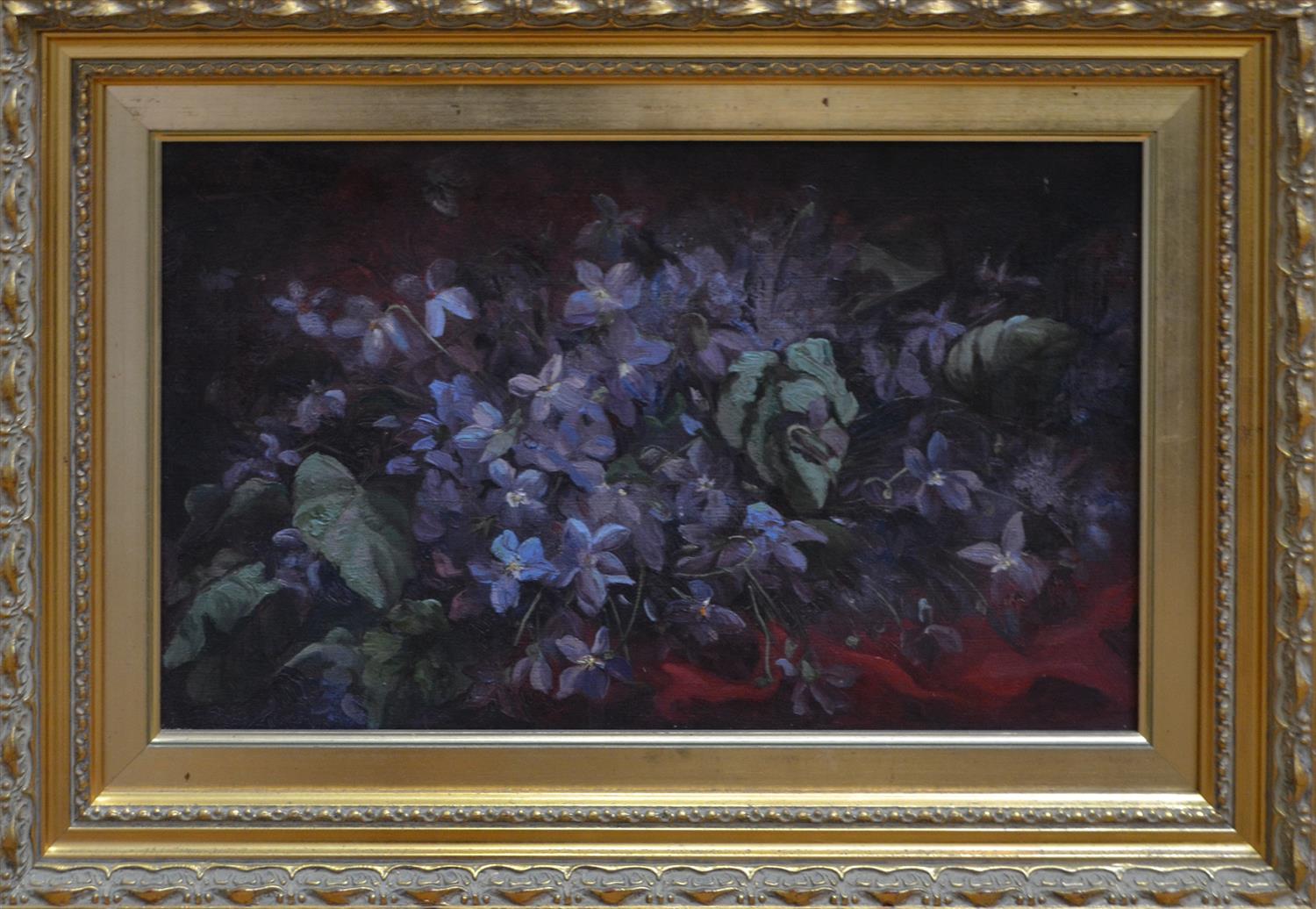 THEO ANDERSON, VIOLETS STILL LIFE, OIL CANVAS, 24 X 40CM, LEONARD JOEL DELIVERY SIZE: SMALL