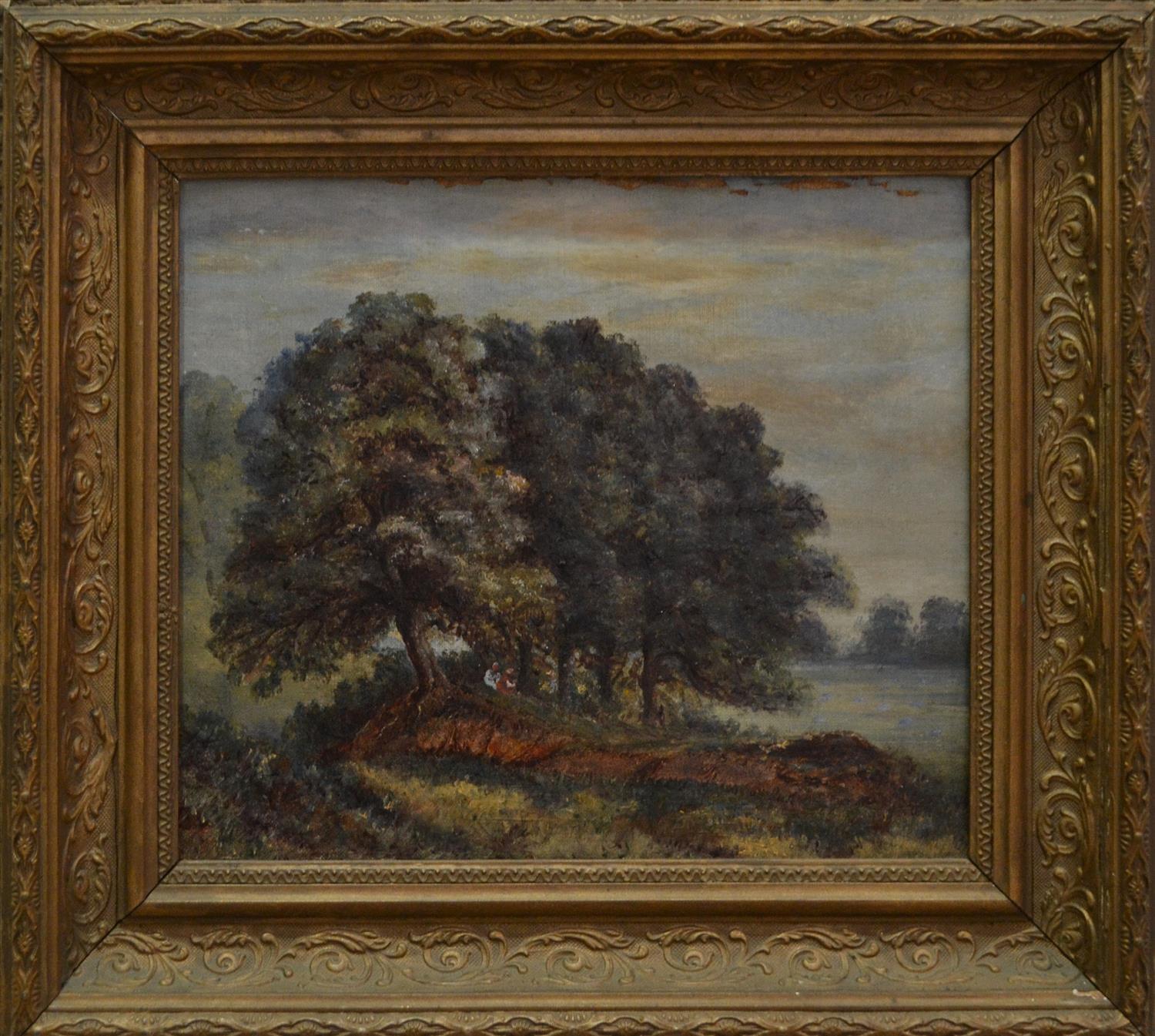 ARTIST UNKNOWN, PICNIC ON THE RIVER BANK, OIL ON CANVAS, 24 X 28CM, LEONARD JOEL DELIVERY SIZE: SMALL