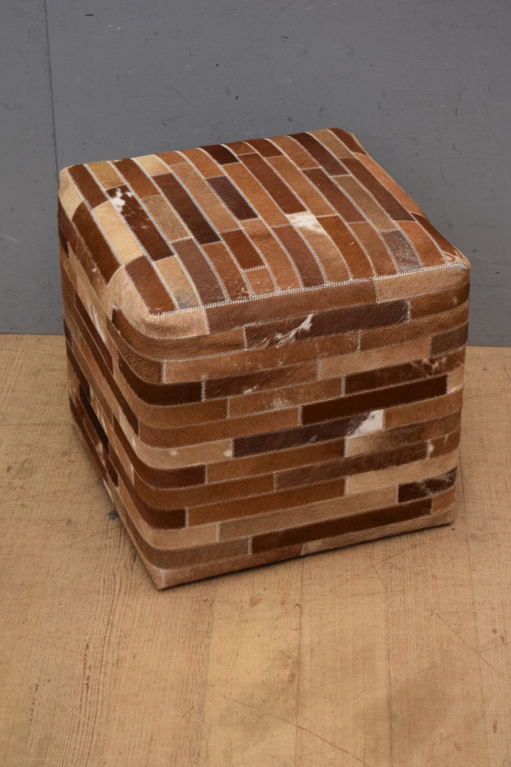 A SQUARE COWHIDE OTTOMAN (H41 X W44 X D44 CM) (LEONARD JOEL DELIVERY SIZE: MEDIUM)