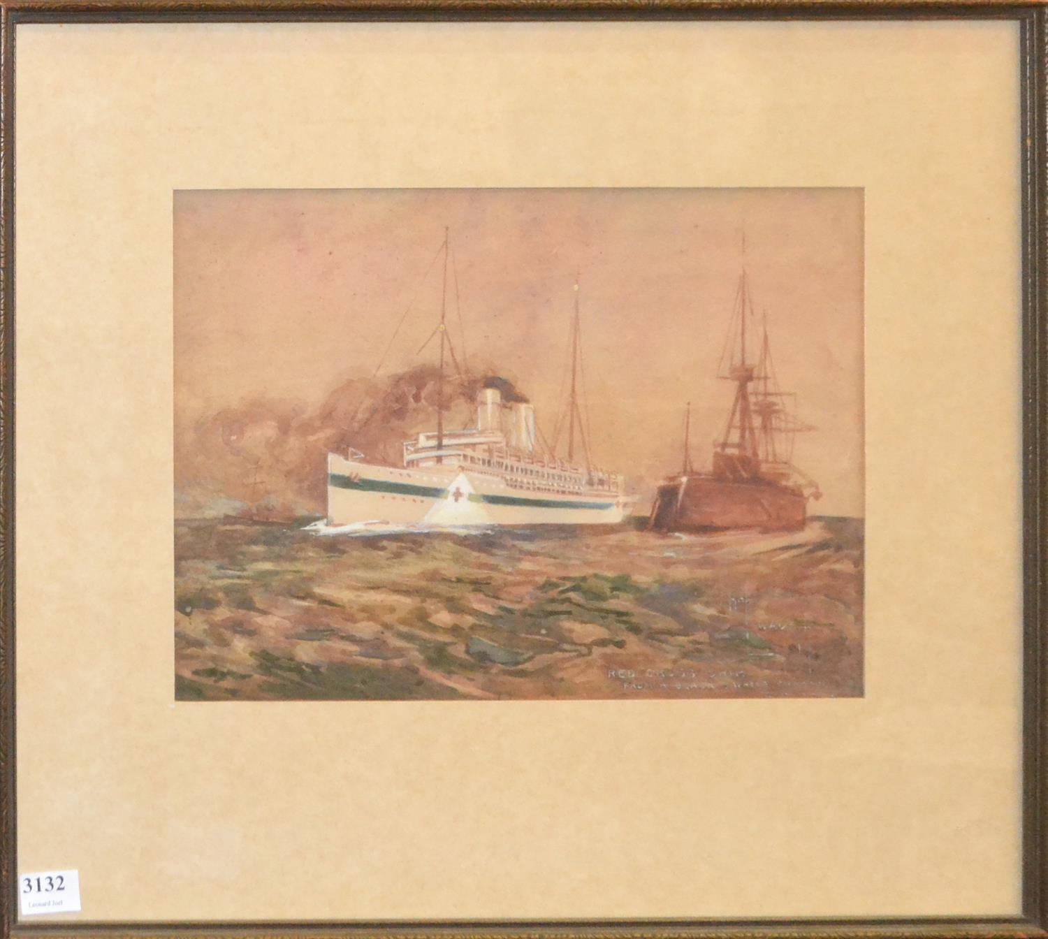 HAL WAUGH, RED CROSS SHIP, WATERCOLOUR AND GOUACHE, 22 X 29CM