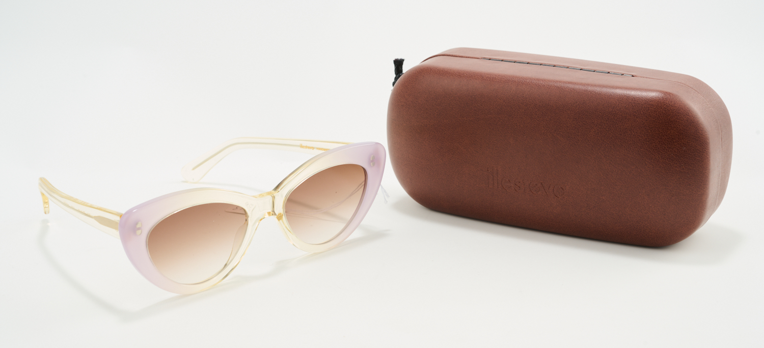 A PAIR OF SUNGLASSES BY ILLESTEVA, MAUVE AND CLEAR COMPOSITE FRAMES, WITH CASE