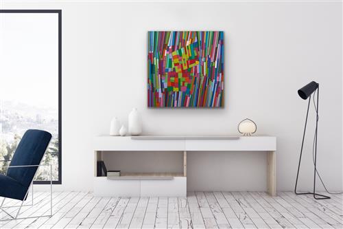 In very good condition. Very minor wear to the edges and corners. A minor blue pigment mark lower left. Stretched with no additional framing.