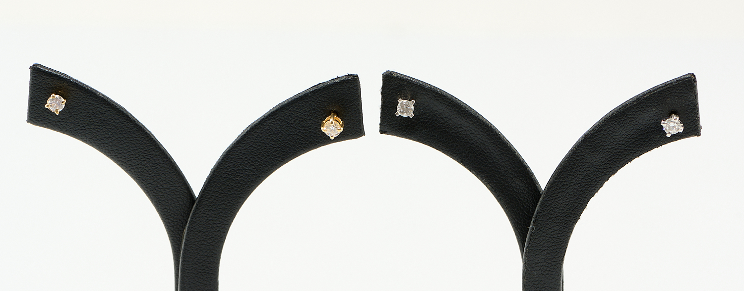 TWO PAIRS OF DIAMOND EARRINGS IN 18CT GOLD, DIAMONDS TOTALLING 0.35CTS, TOP POST AND BUTTERFLY FITTINGS, 1.5GMS