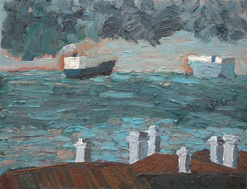 signed, titled and dated verso: Julian Twigg / 2015 / View from George