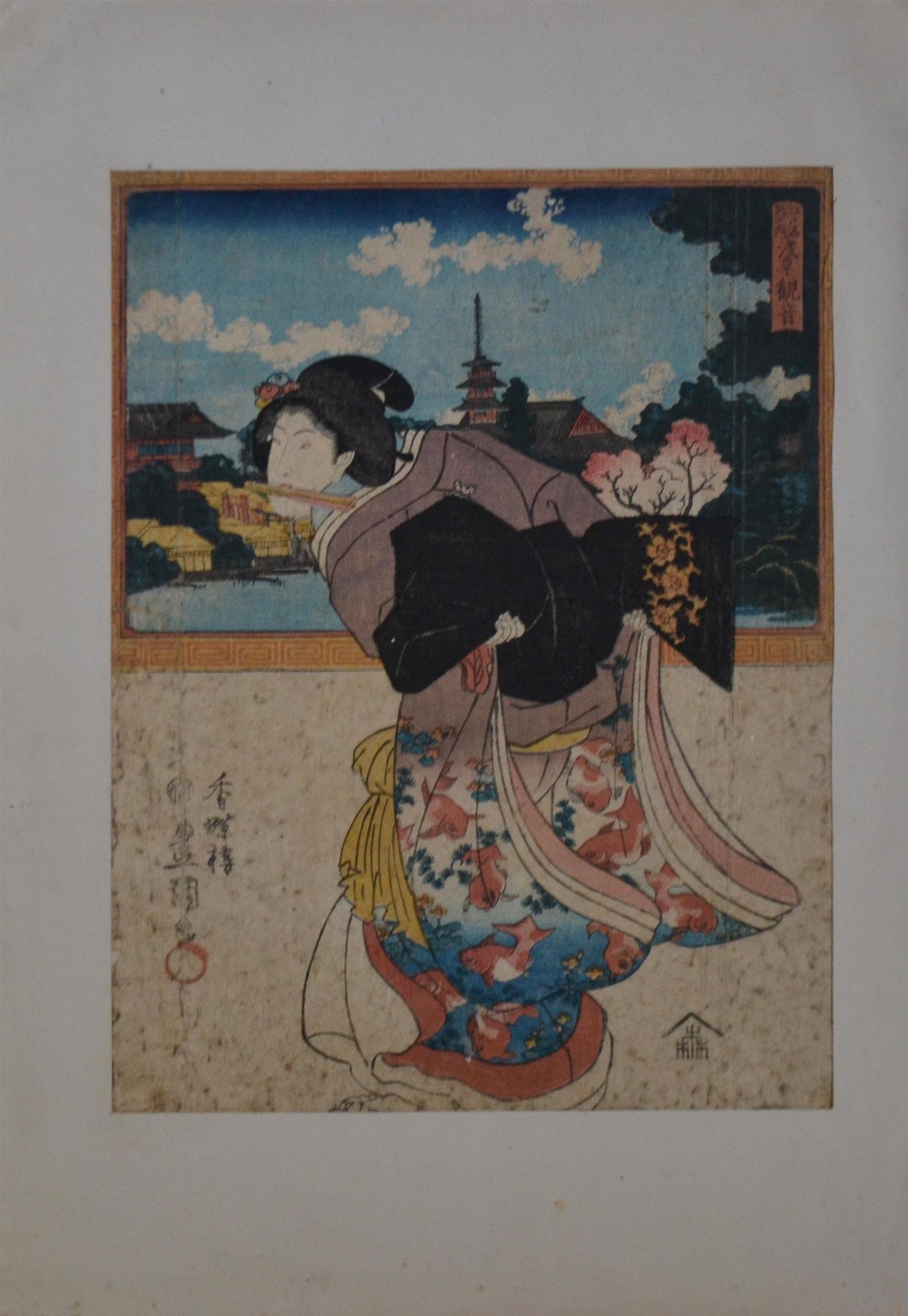 TOYOKUNI, STANDING BEAUTY, WOODBLOCK, 34 X 25CM