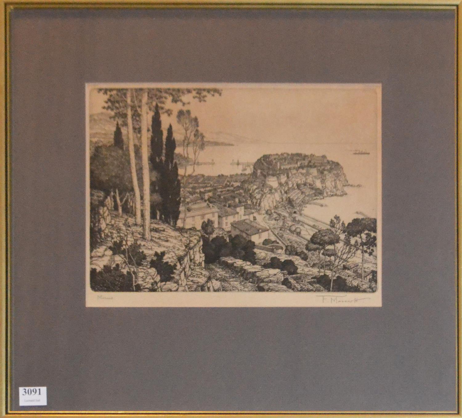 FREDERICK MARRIOTT, MONACCO, ETCHING, 18.5 X 26CM, FRAME: 42 X 43CM