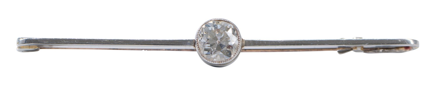 Centring a collet-set old European-cut diamond weighing approximately 1.80 carats, length 55mm.