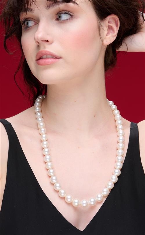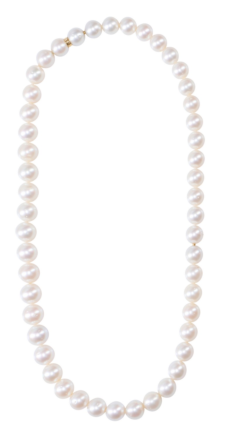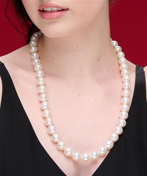 Composed of forty-nine round pearls of cream-white hues graduating from 12.20mm to 14.60 mm, to a diamond set clasp, signed Kailis, length 650mm.