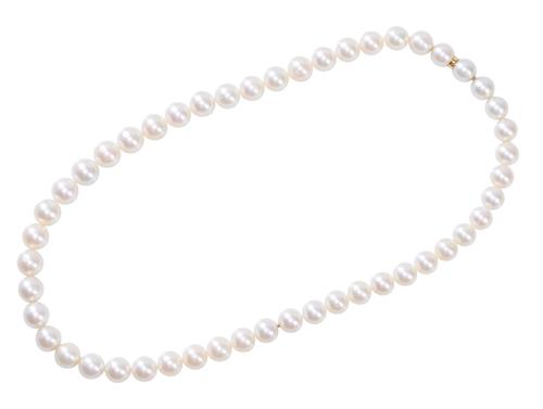 The cultured pearls are predominantly of round shape, of cream-white body colour with very light overtones of blue, green and pink, good lustre, with surface blemishes and typical growth marks observed upon close inspection.