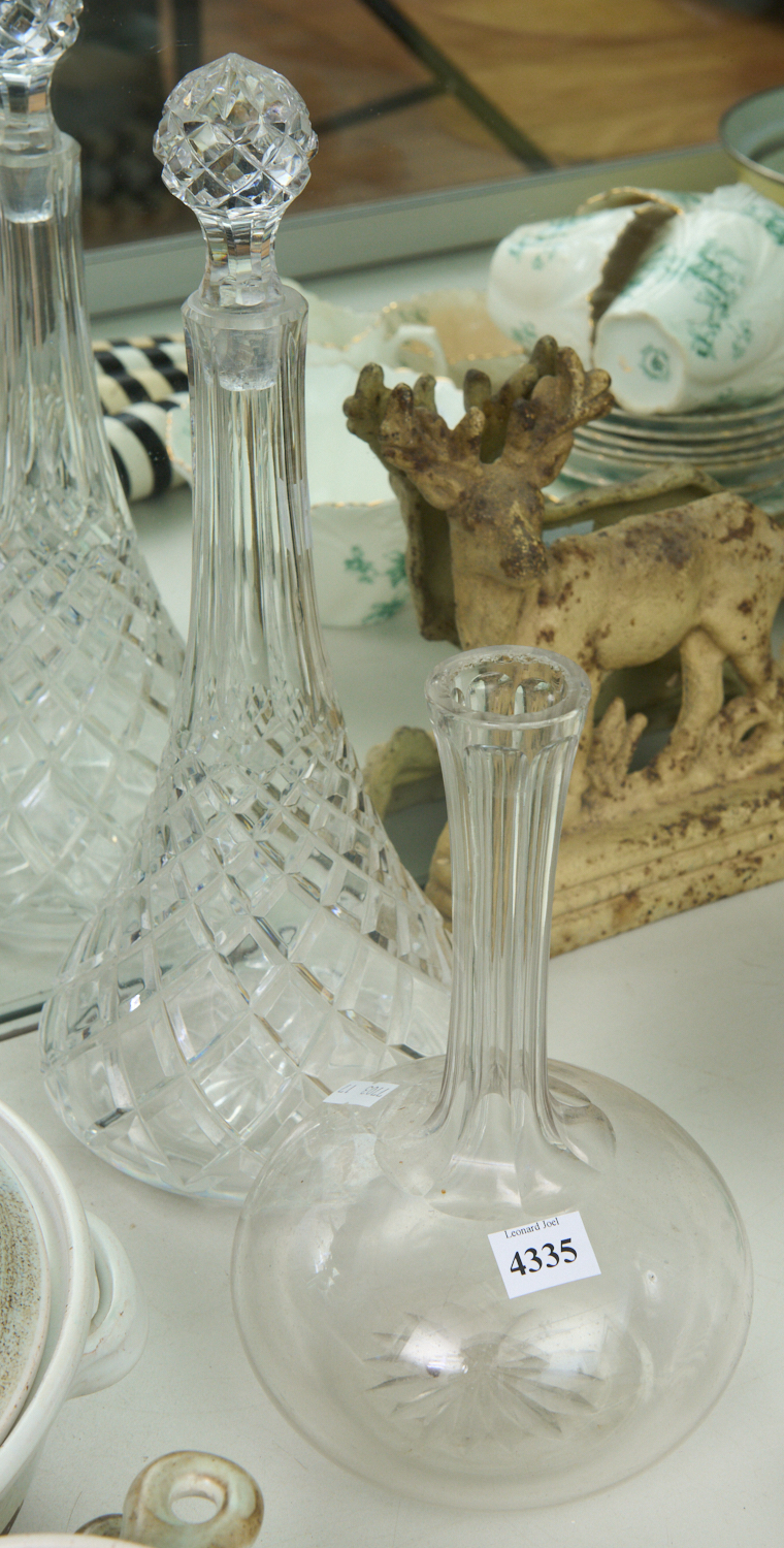 TWO VINTAGE GLASS DECANTERS, LEONARD JOEL LOCAL DELIVERY SIZE: SMALL