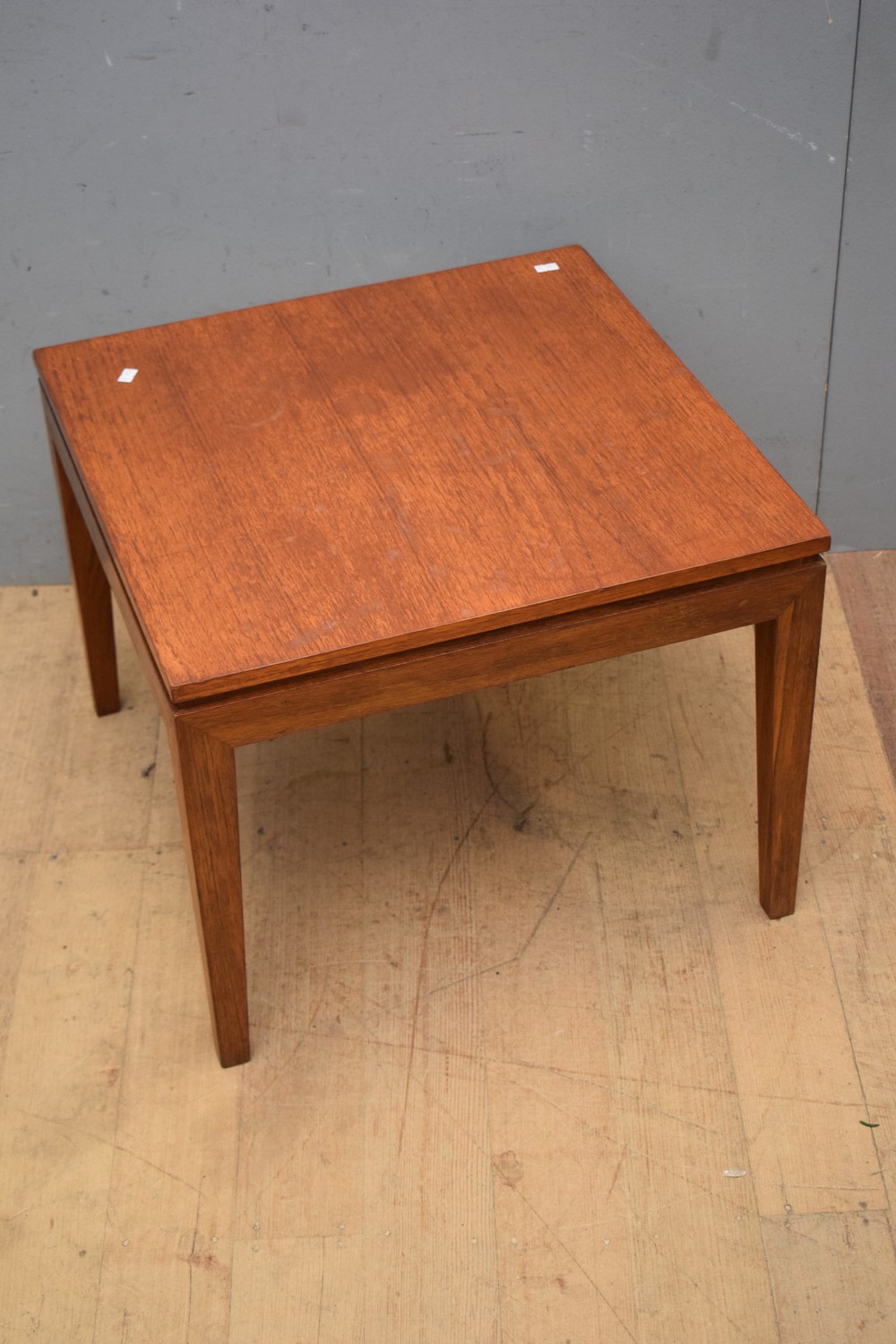 AN AUSTRALIAN MADE SOLID TEAK TH BROWN COFFEE TABLE (A/F) ( 43H X 56W X 56D CM) (LEONARD JOEL DELIVERY SIZE: MEDIUM)