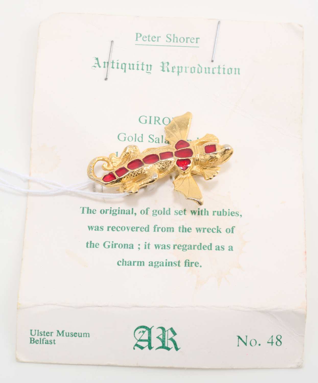 A PASTE SET ANTIQUE REPRODUCTION SALAMANDER BROOCH, LENGTH APPROXIMATELY 40MM