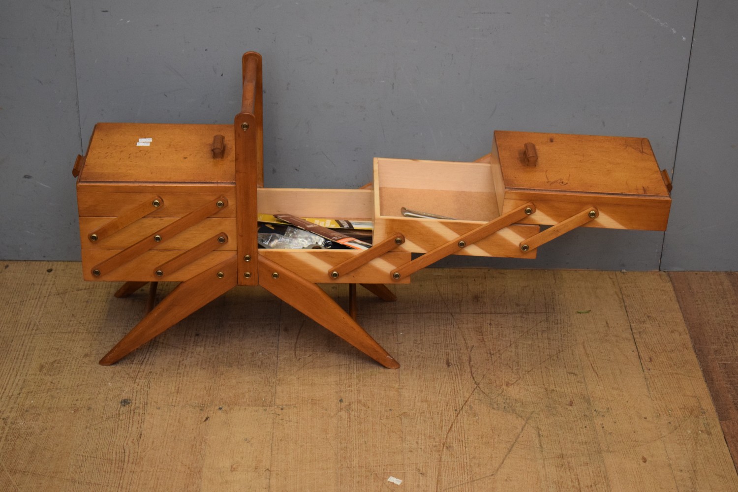 A CANTILEVERED SEWING BOX WITH CONTENTS (50H x 60W x 26D CM) (LEONARD JOEL DELIVERY SIZE: MEDIUM)