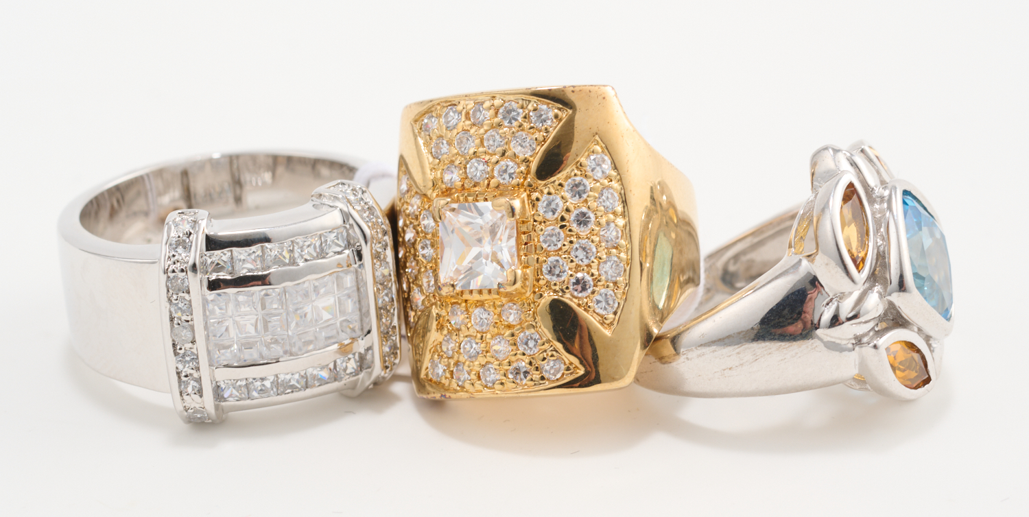A COLLECTION OF THREE GEM SET RINGS IN SILVER, RING SIZES M, N AND X