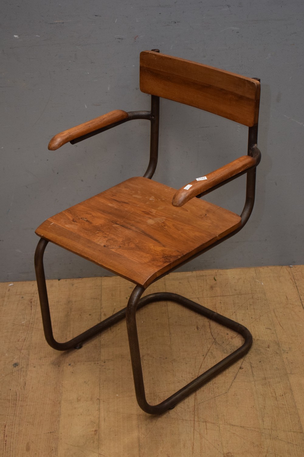 AN INDUSTRIAL CANTILEVERED CHAIR (A/F) (82H x 53W x 52D CM) (LEONARD JOEL DELIVERY SIZE: LARGE)