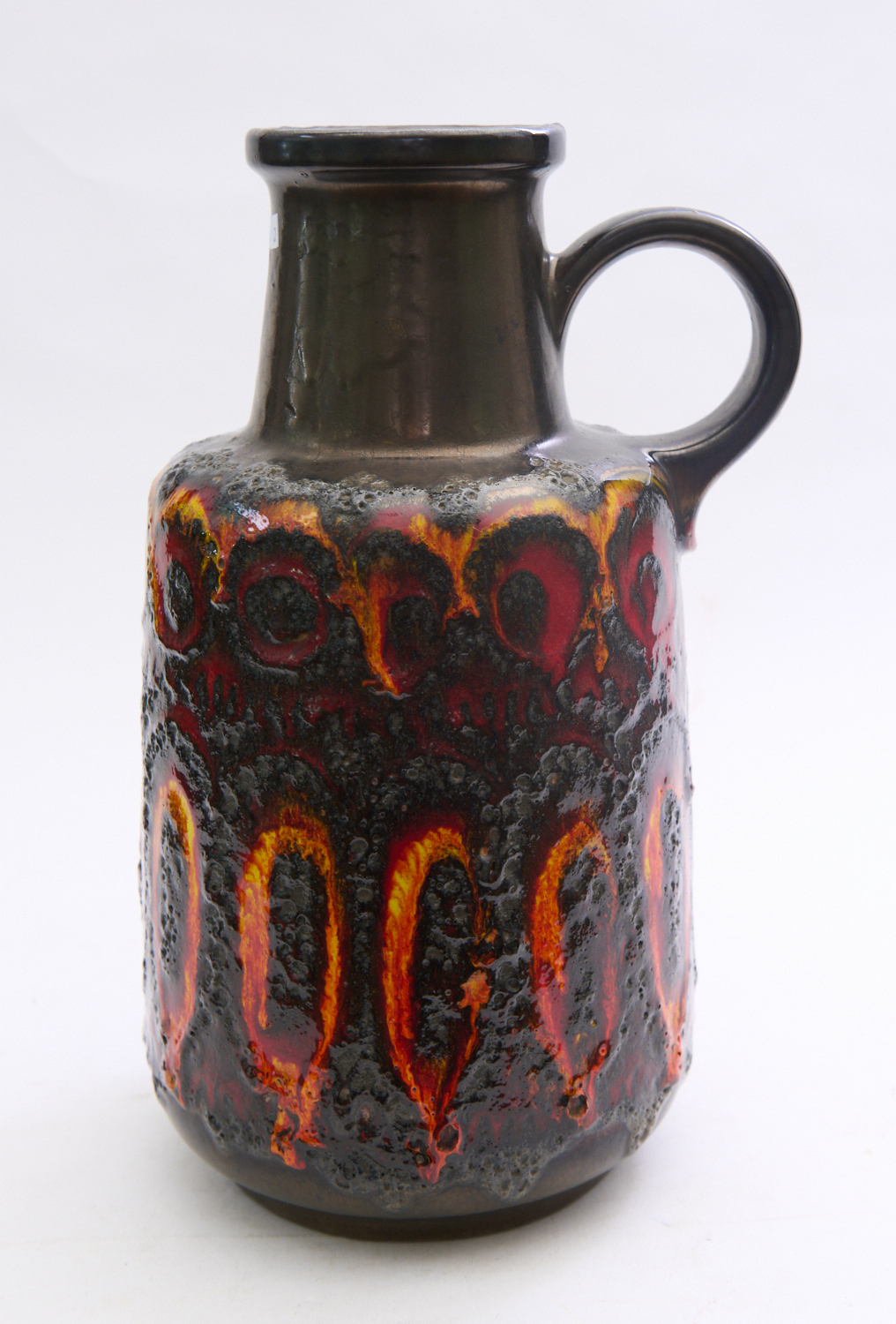 LARGE 1960S W. GERMAN FAT LAVA RETRO POTTERY VASE WITH HANDLE MARKED 408-40 W GERMANY TO BASE H.40CM, LEONARD JOEL LOCAL DELIVERY SIZE: SMALL