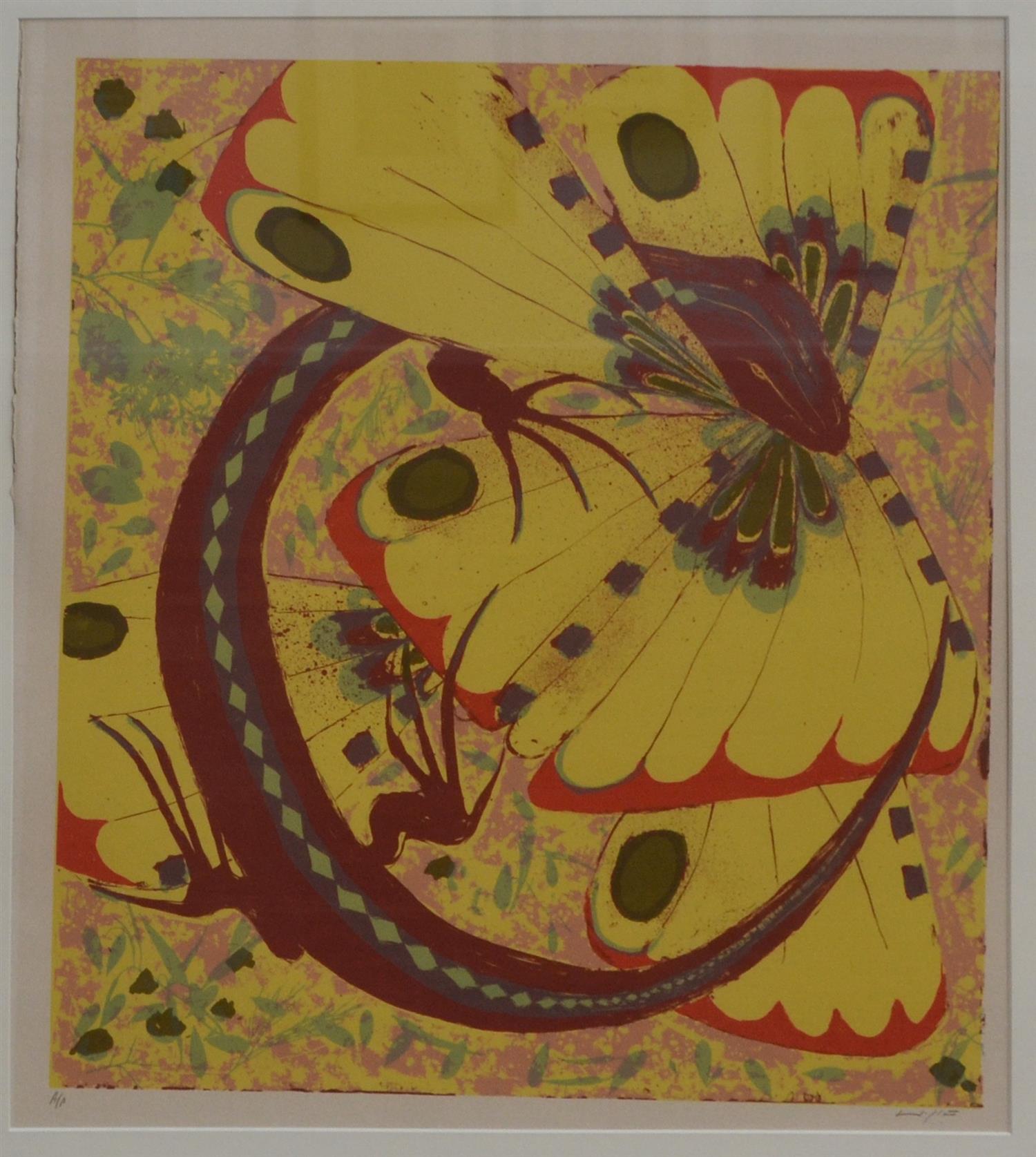 CLIFTON PUGH, LIZARD AND BUTTERFLY, SCREENPRINT A/P, 60 X 54CM