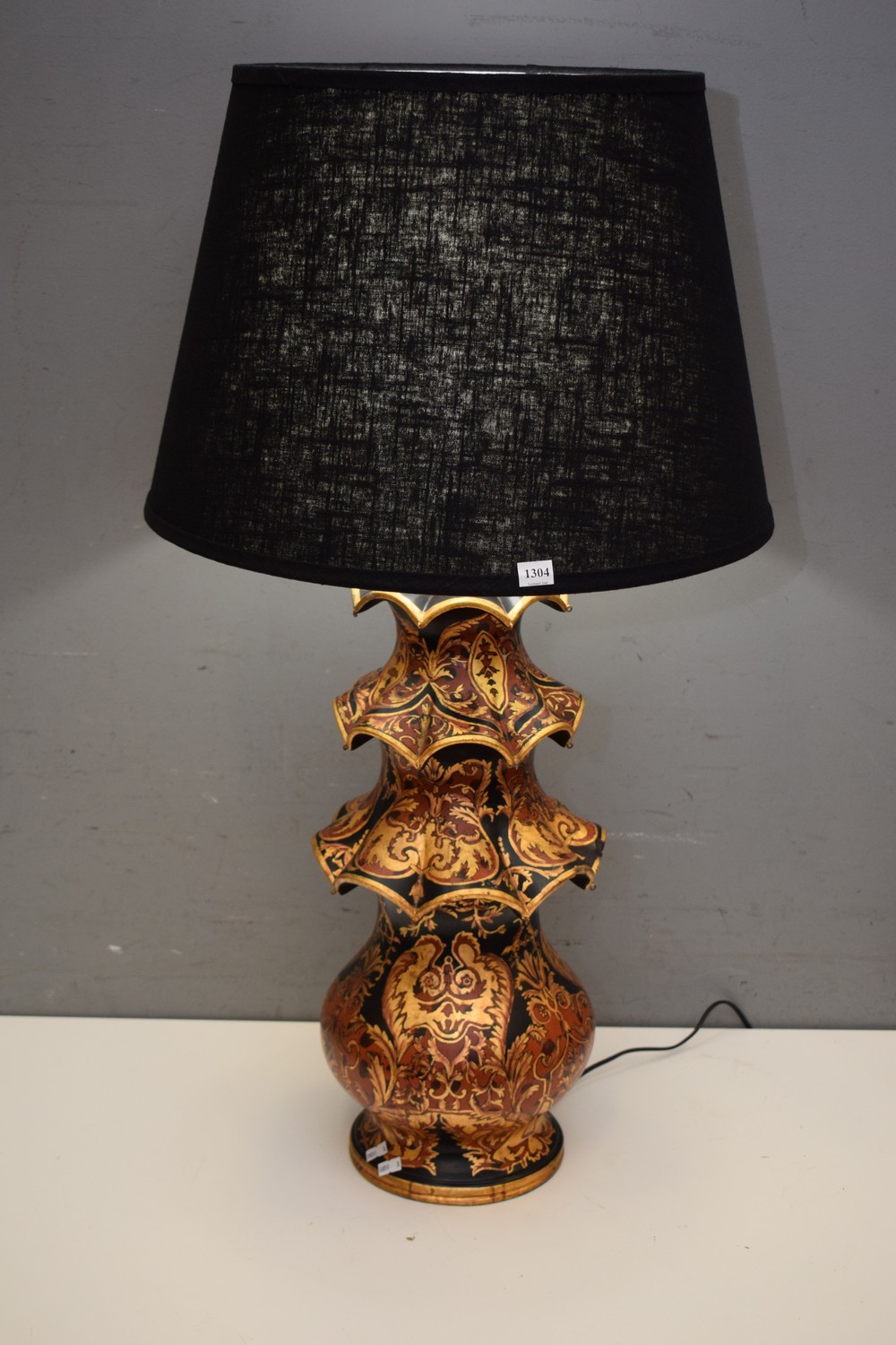 A LARGE DECORATIVE TABLE LAMP WITH GILT AND HAND PAINTED DETAILING (94H CM) (LEONARD JOEL DELIVERY SIZE: LARGE)