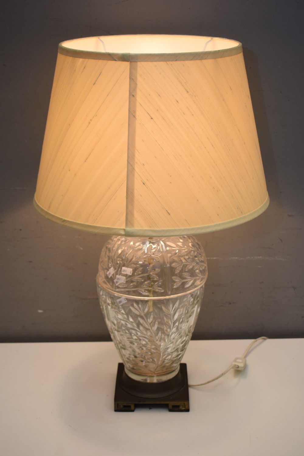 A DECORATIVE CRYSTAL TABLE LAMP WITH BRASS BASE (H74 X D47 CM) (LEONARD JOEL DELIVERY SIZE: MEDIUM)