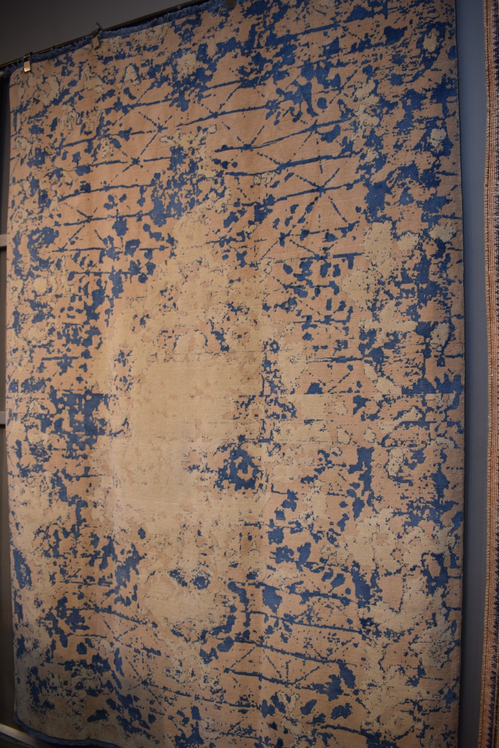 A LUSTROUS CONTEMPORARY NEW PERSIAN MODERN TRANSITIONAL RUG WITH MODERN TRANSITIONAL DESIGN OF ERASED AND EMBOSSED PATTERNS. FINELY HAND-WOVEN PLUSH WOOLLEN AND SILKY TEXTURE PILE GALLERY DISPLAYED CARPET. THE ENTIRE IN SAXON BLUE, BEIGE & CREAM. ORIGIN: IRAN - RRP: $4,800 SIZE: 295X197CM CERTIFICATE OF AUTHENTICITY INCLUDED