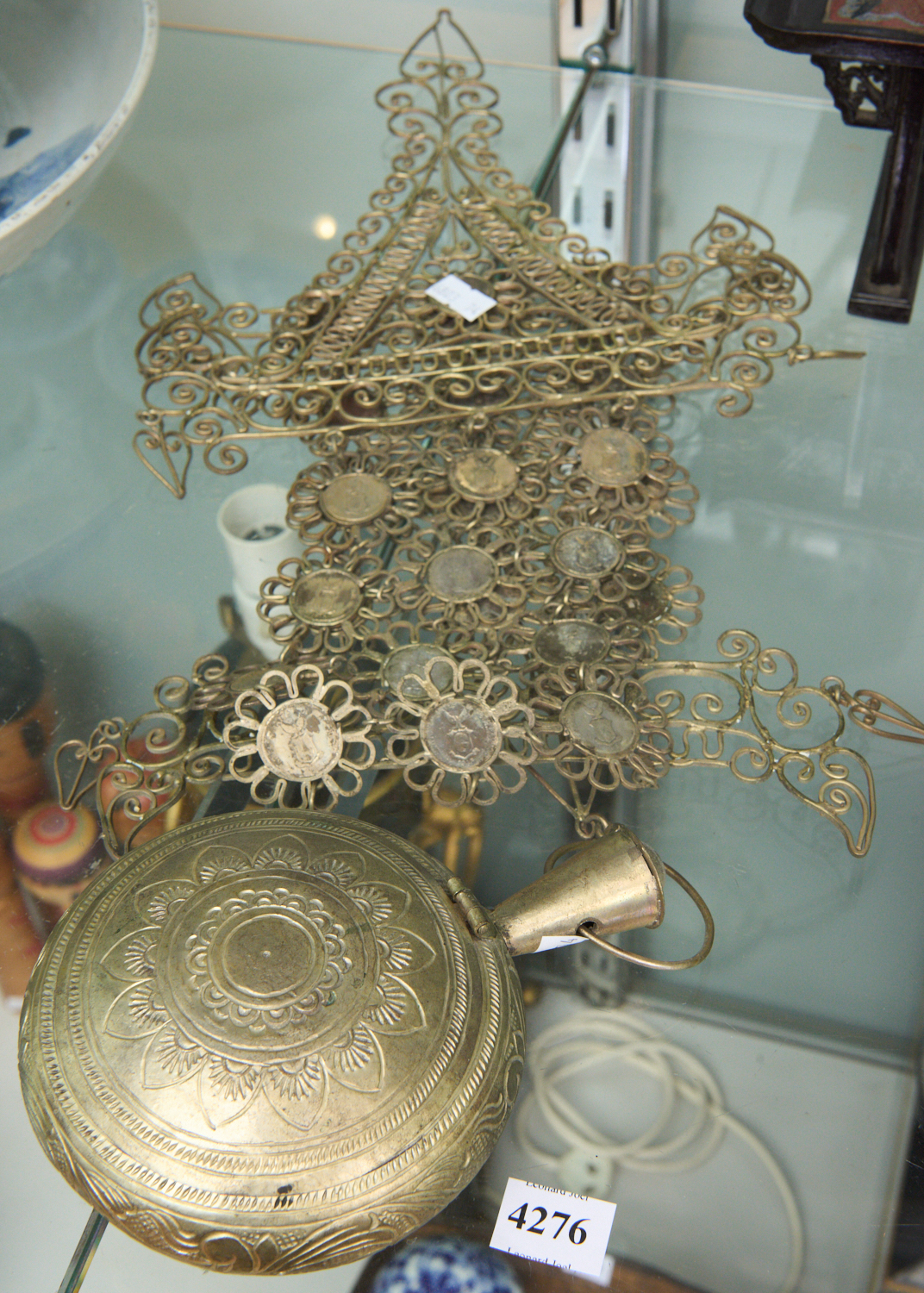 A BRASS FILIGREE WALL HANGING AND BOX DIA.12CM, LEONARD JOEL LOCAL DELIVERY SIZE: SMALL