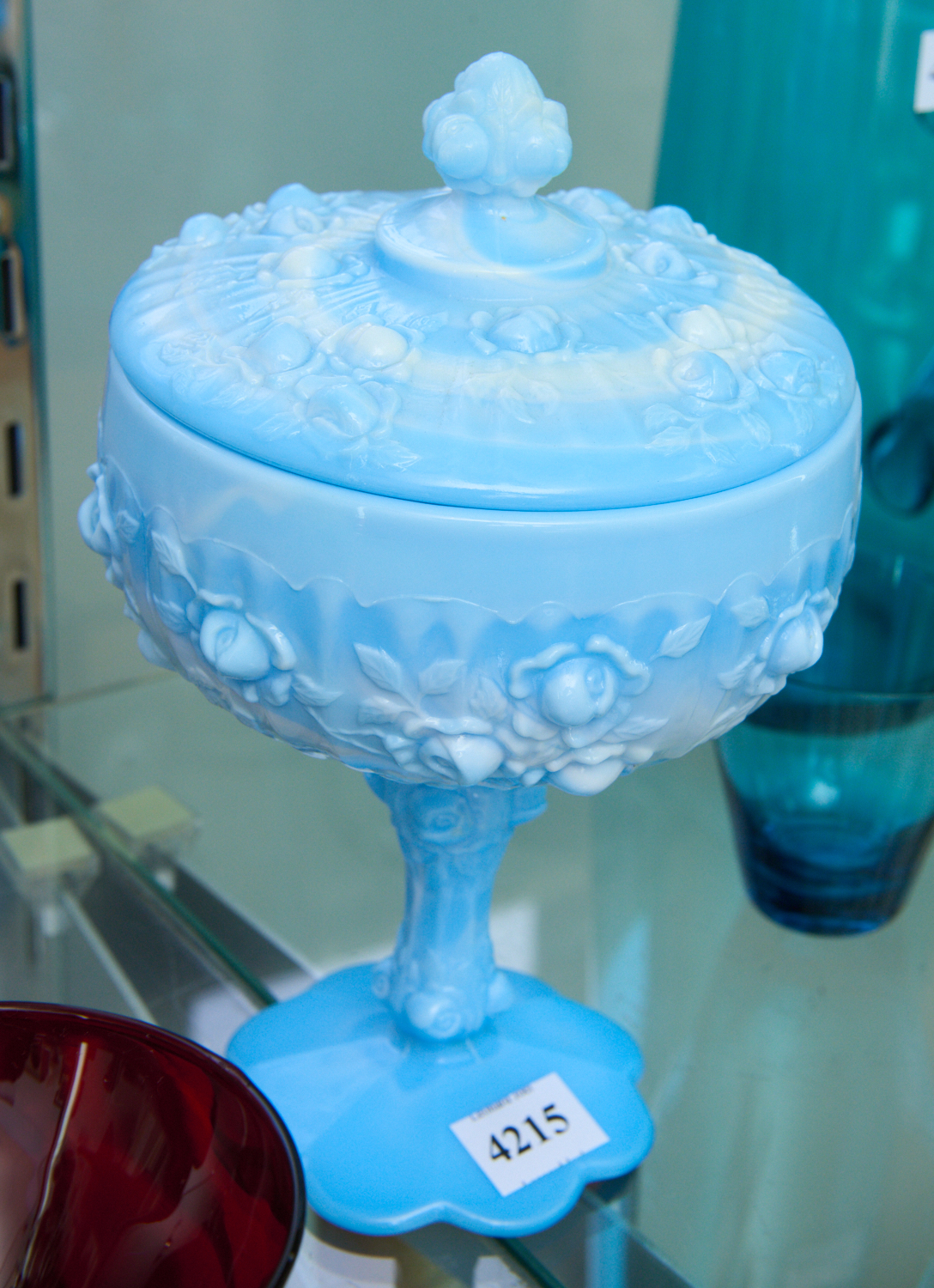 A VICTORIAN BLUE MILK GLASS LIDDED COMPORT (24 CM H), LEONARD JOEL LOCAL DELIVERY SIZE: SMALL. The Rodney Permezel Collection
