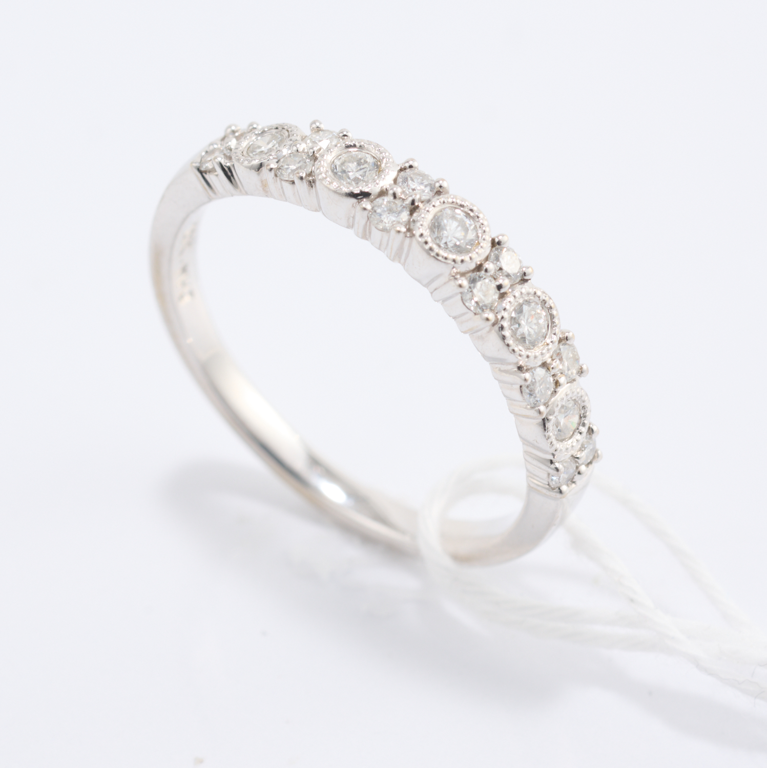 A DIAMOND RING IN 10CT WHITE GOLD, THE DIAMONDS TOTALLING APPOXIMATELY 0.27CTS, RING SIZE N, 2.6GMS