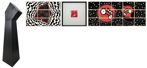 70 x 100cm (each, sheet), 22 x 20cm (image), sculpture: 216cm (height)