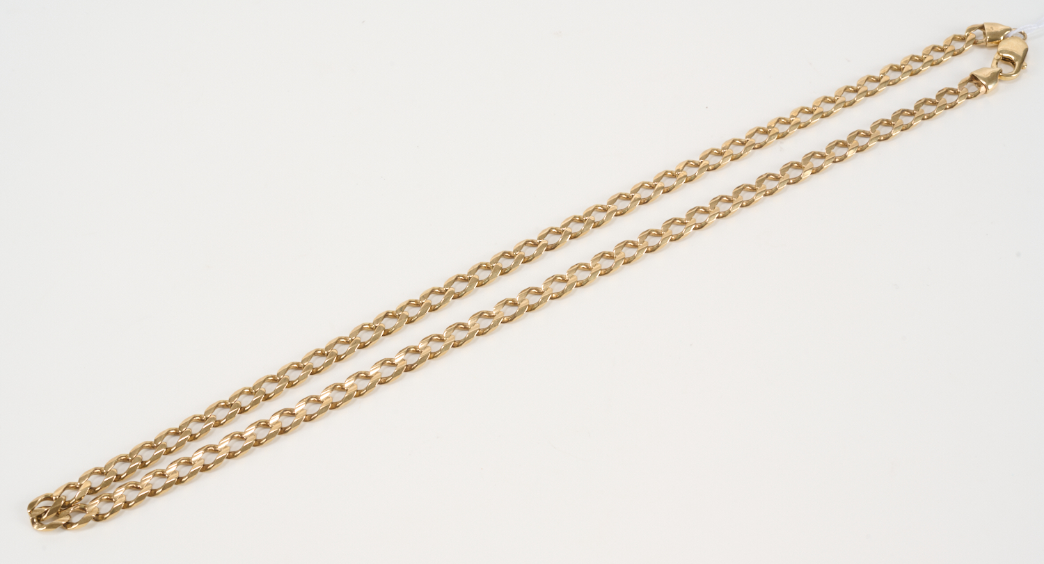 A CURB CHAIN IN 9CT GOLD, WEIGHT 56.8 GRAMS